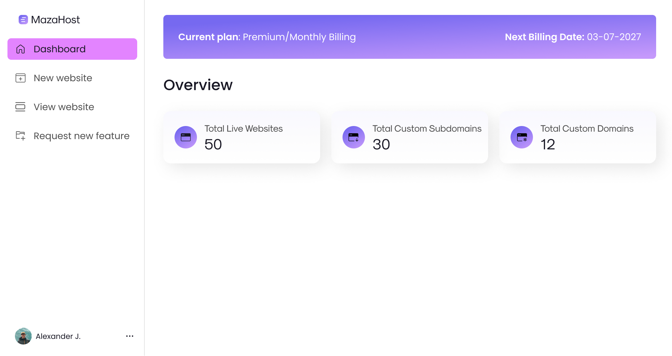 As a UX designer, I undertook the task of designing the landing page for MazaHost, a web hosting service provider. To ensure an optimal user experience, I focused on creating an intuitive and visually appealing layout. By considering various use cases, I crafted a design that catered to both new and existing customers.